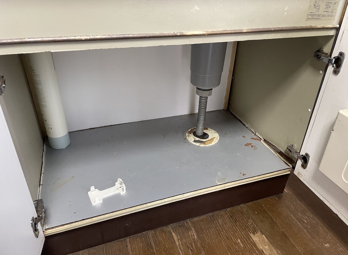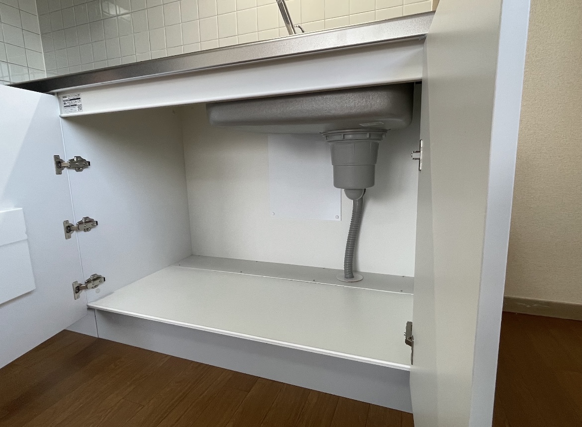 老朽化していたシンク下収納と配管まわりを清潔感ある仕上がりに。